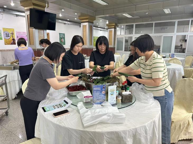 6月5日,食堂內(nèi)粽葉飄香,歡聲一片。大家互相幫助、互相學(xué)習(xí)、互相切磋技藝,沉浸在一片歡樂(lè)祥和的節(jié)日喜慶中?;顒?dòng)現(xiàn)場(chǎng),糯米、粽葉等必備材料被整齊地?cái)[上桌,大家紛紛向“高手”取經(jīng),學(xué)習(xí)包粽子技巧,折粽葉、填糯米、裹葉子、扎線……只見(jiàn)一雙雙巧手在歡聲笑語(yǔ)中上下翻飛。大家一邊包粽子,一邊聊著節(jié)日風(fēng)俗,很快三角形、喇叭形、牛角形、長(zhǎng)條形等各式各樣的漂亮粽子,就這樣一個(gè)個(gè)在大家手中誕生了整個(gè)活動(dòng)沉浸在一片輕松愉悅的氛圍中,活動(dòng)結(jié)束后大家將親手包的粽子帶回家,跟家人分享節(jié)日的喜悅。