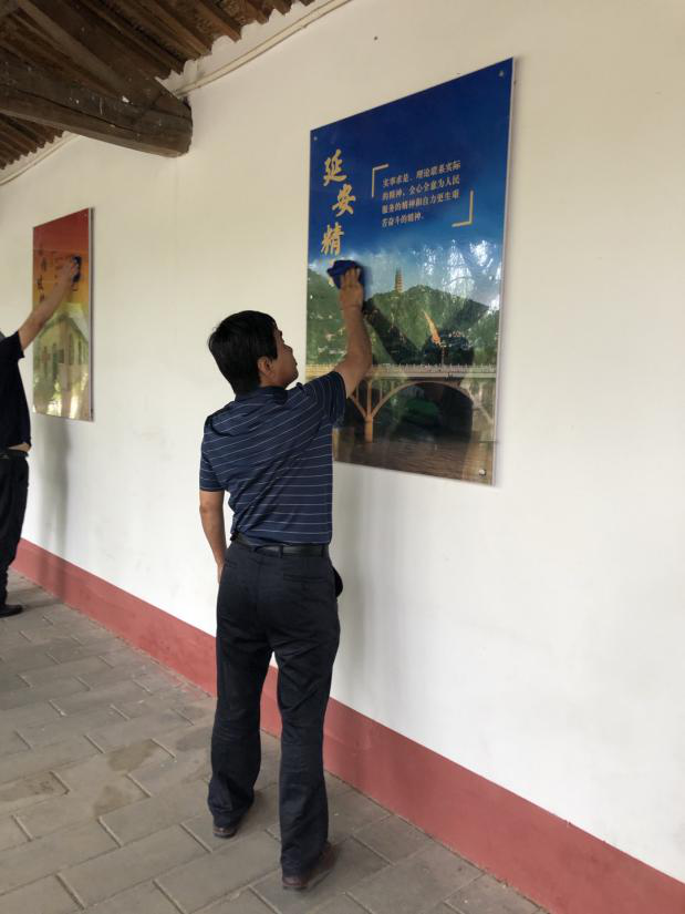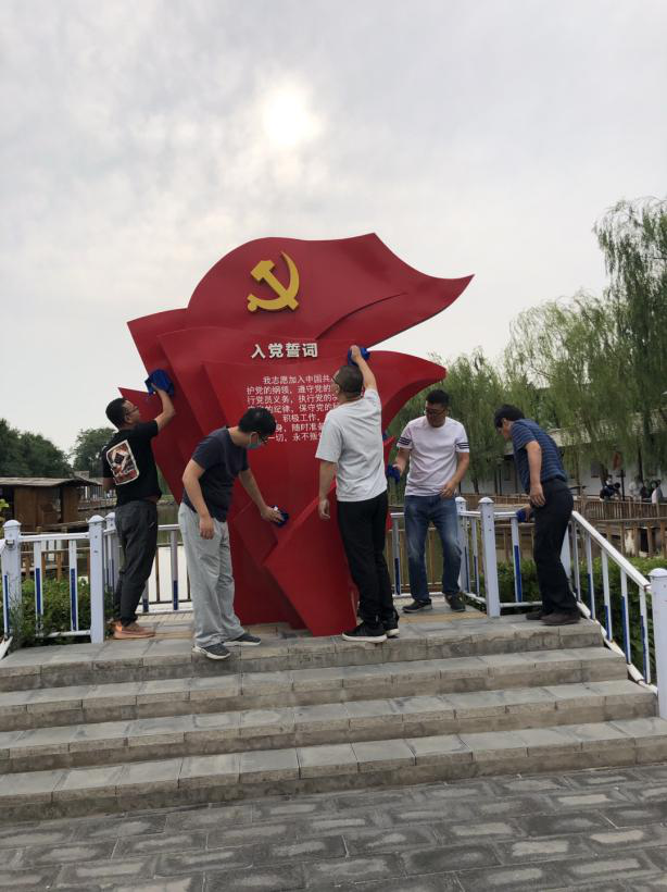 活動(dòng)中,黨員干部重點(diǎn)擦拭了黨史宣傳板、誓詞臺(tái)、路燈桿,清掃了湖邊棧道,撿拾了湖邊白色垃圾。在清掃過程中,同志們精神抖擻,不怕臟不拍累干得熱火朝天。經(jīng)過清掃的基地?zé)ㄈ灰恍拢h(huán)境明顯改善。