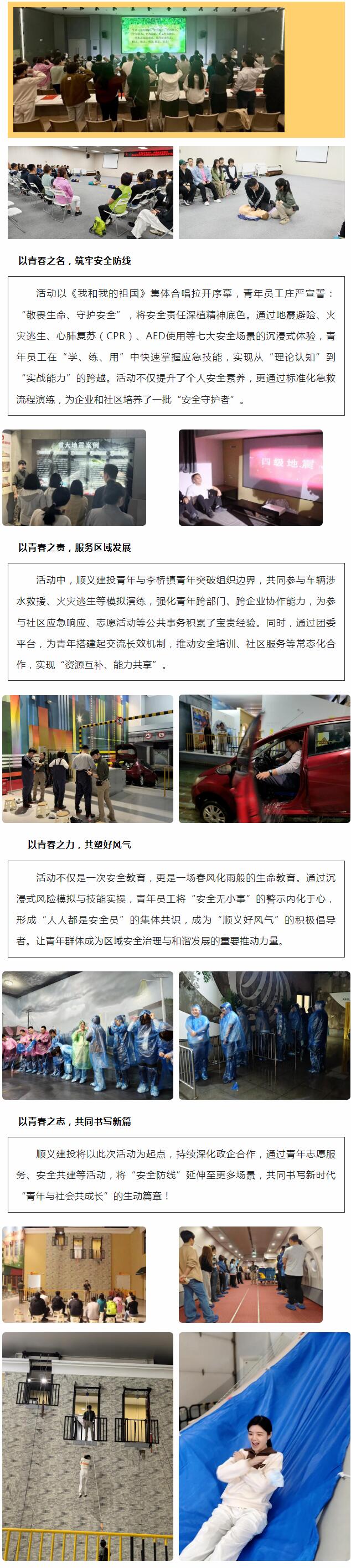 五四青年節(jié)到來之際,北京順義建設(shè)投資服務(wù)有限公司(簡(jiǎn)稱“順義建投”)聯(lián)合李橋鎮(zhèn)政府,以“青年攜手安全行、共塑順義好風(fēng)氣”為主題,在北京公共安全體驗(yàn)館舉辦了一場(chǎng)別開生面的沉浸式安全教育活動(dòng)。50余名青年員工通過“識(shí)險(xiǎn)避險(xiǎn)、自救互救”實(shí)戰(zhàn)演練,將五四精神轉(zhuǎn)化為守護(hù)生命的行動(dòng)力,為順義區(qū)安全防線建設(shè)注入青春動(dòng)能。