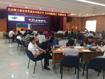 7月5日,北京順義建設(shè)投資服務(wù)有限公司工會(huì)利用一天的時(shí)間,組織公司中層及以上干部、后備干部,開展了一次主題為4D卓越團(tuán)隊(duì)的專題培訓(xùn)活動(dòng),重在提高公司中層的團(tuán)隊(duì)管理意識(shí),加強(qiáng)團(tuán)隊(duì)建設(shè)。