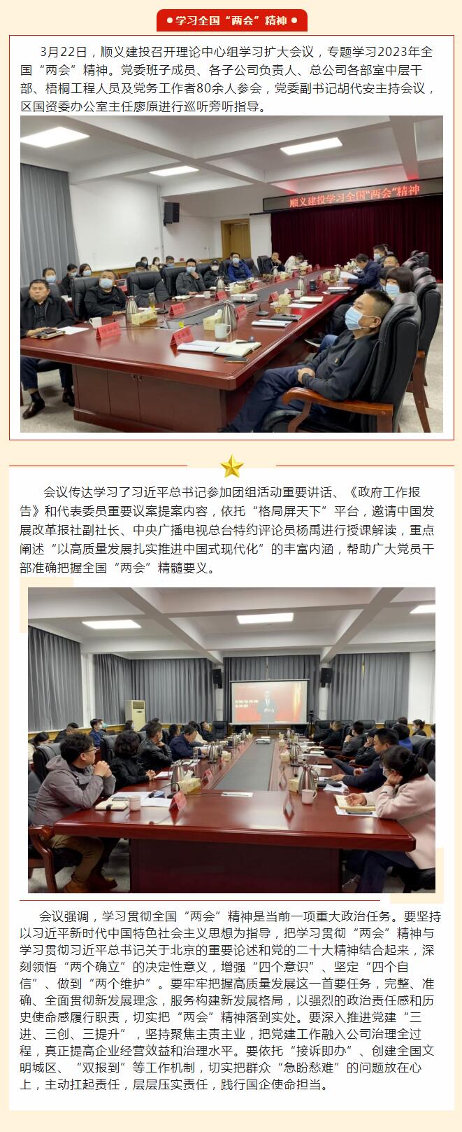 順義建投黨委專題學習2023年全國“兩會”精神