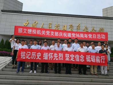 銘記歷史,緬懷先烈,堅定信念,砥礪前行,北京順義建設(shè)投資服務公司機關(guān)黨支部開展“迎七一”主題黨日活動。在建黨96周年來臨之際,6月29日,順義建投27名黨員干部和入黨積極分子前往中國人民抗日戰(zhàn)爭紀念館和盧溝橋參觀學習,重溫革命歷史,緬懷革命先烈。