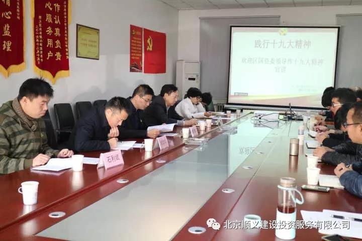 2017年12月13日上午,區(qū)國資委副主任彭智赴北京順政通工程監(jiān)理有限公司宣講十九大精神,并與基層黨員干部座談交流。順義建投黨委副書記、經(jīng)理姚仕松同志一同參會。