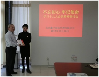 工會(huì)主席岳陽(yáng)赴北京鑫新國(guó)際拍賣有限公司黨支部宣講十九大精神。