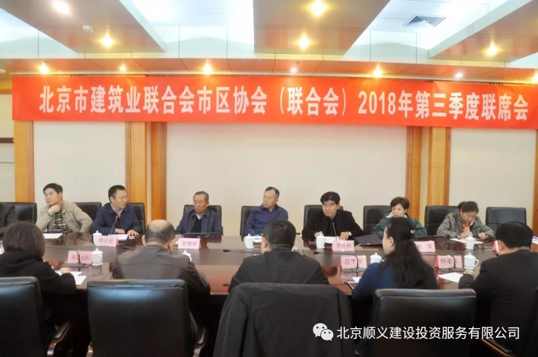 10月23日,“北京市建筑業(yè)聯(lián)合會(huì)市區(qū)協(xié)會(huì)2018年第三季度聯(lián)席會(huì)”在順義區(qū)順鑫大學(xué)順利舉行,北京市建筑業(yè)聯(lián)合會(huì)會(huì)長(zhǎng)欒德成、北京市建筑業(yè)聯(lián)合會(huì)副會(huì)長(zhǎng)兼秘書長(zhǎng)馮義、北京市建筑業(yè)聯(lián)合會(huì)副會(huì)長(zhǎng)李廷樹及各區(qū)建筑業(yè)協(xié)會(huì)成員代表參加會(huì)議,我公司黨委副書記、經(jīng)理姚士松、黨委委員、副經(jīng)理張海龍也參加了此次會(huì)議。