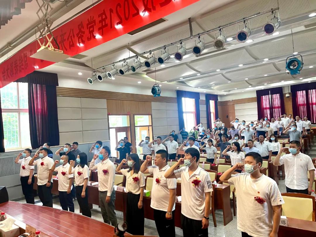 公司黨委為所有黨員發(fā)放建黨百年賀卡,集體慶賀政治生日,同賀百年華誕。為新黨員佩戴大紅花,組織新黨員入黨宣誓,公司黨委副書記、經理姚仕松同志帶領全體黨員重溫入黨誓詞。面對鮮艷的黨旗,黨員們鏗鏘有力的誓言久久回蕩。黨員干部紛紛表示,要不忘初心,牢記使命,堅決把對黨和人民莊嚴的承諾落實到黨和國家的光輝事業(yè)中,把敬黨愛黨的熱情落實到黨組織交付的工作任務中,把為民情懷落實到公司健康發(fā)展中。